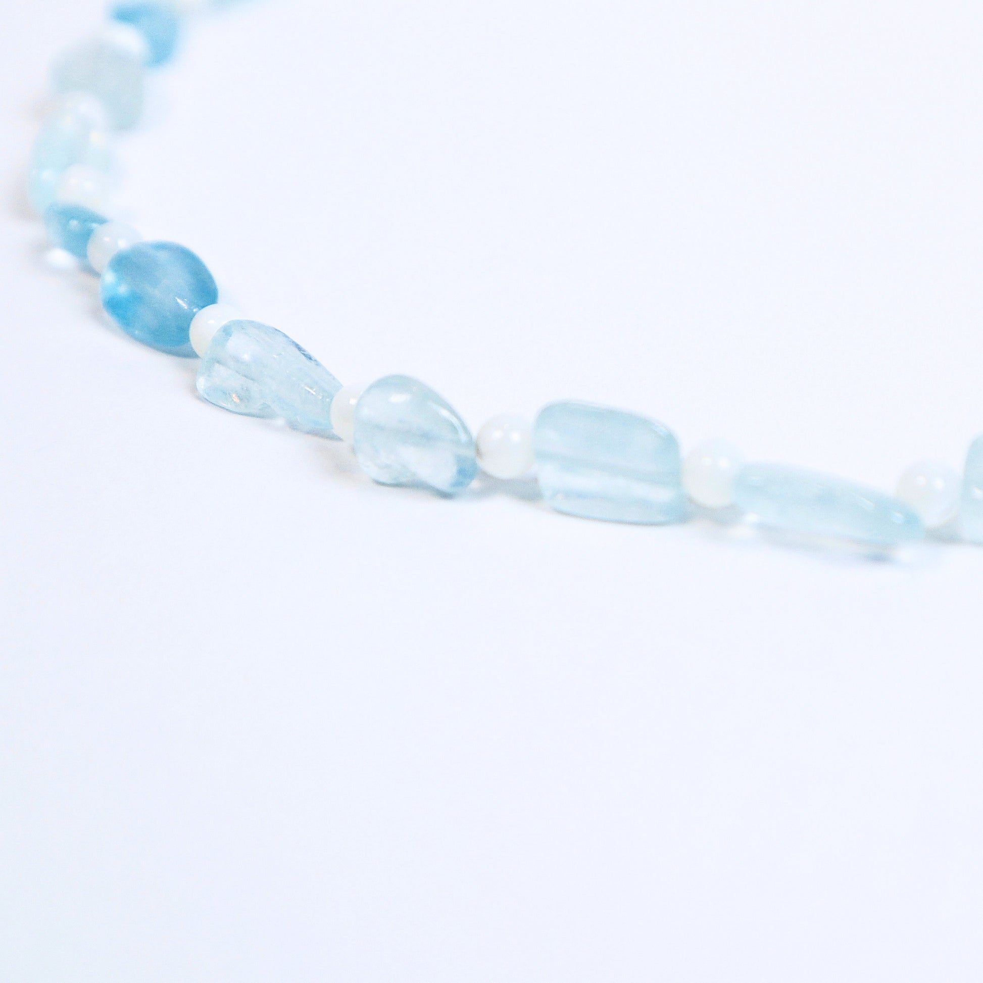Aquamarine & Pearl Necklace with 925 Silver Clasp