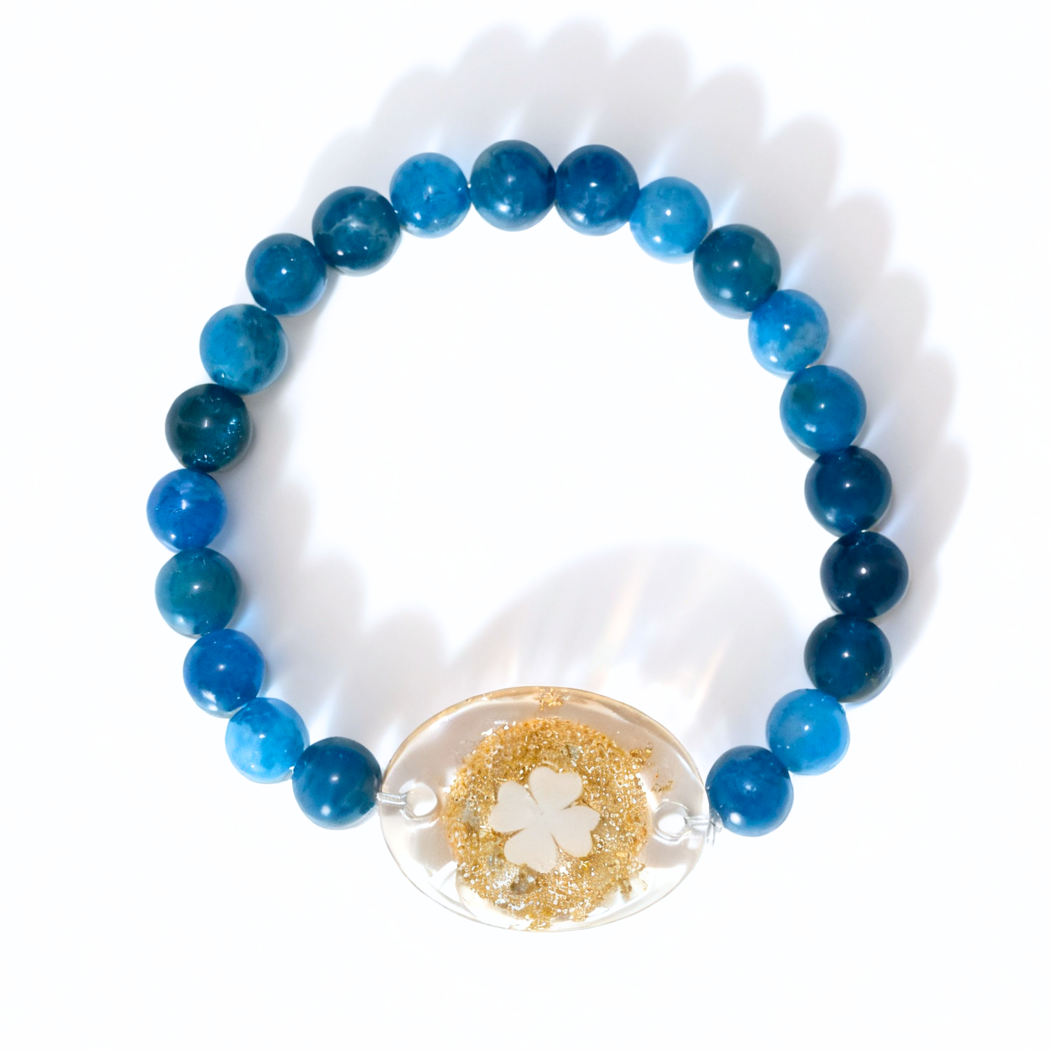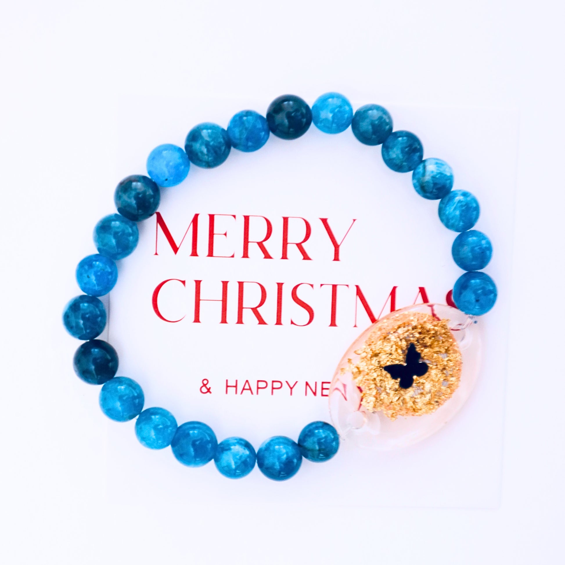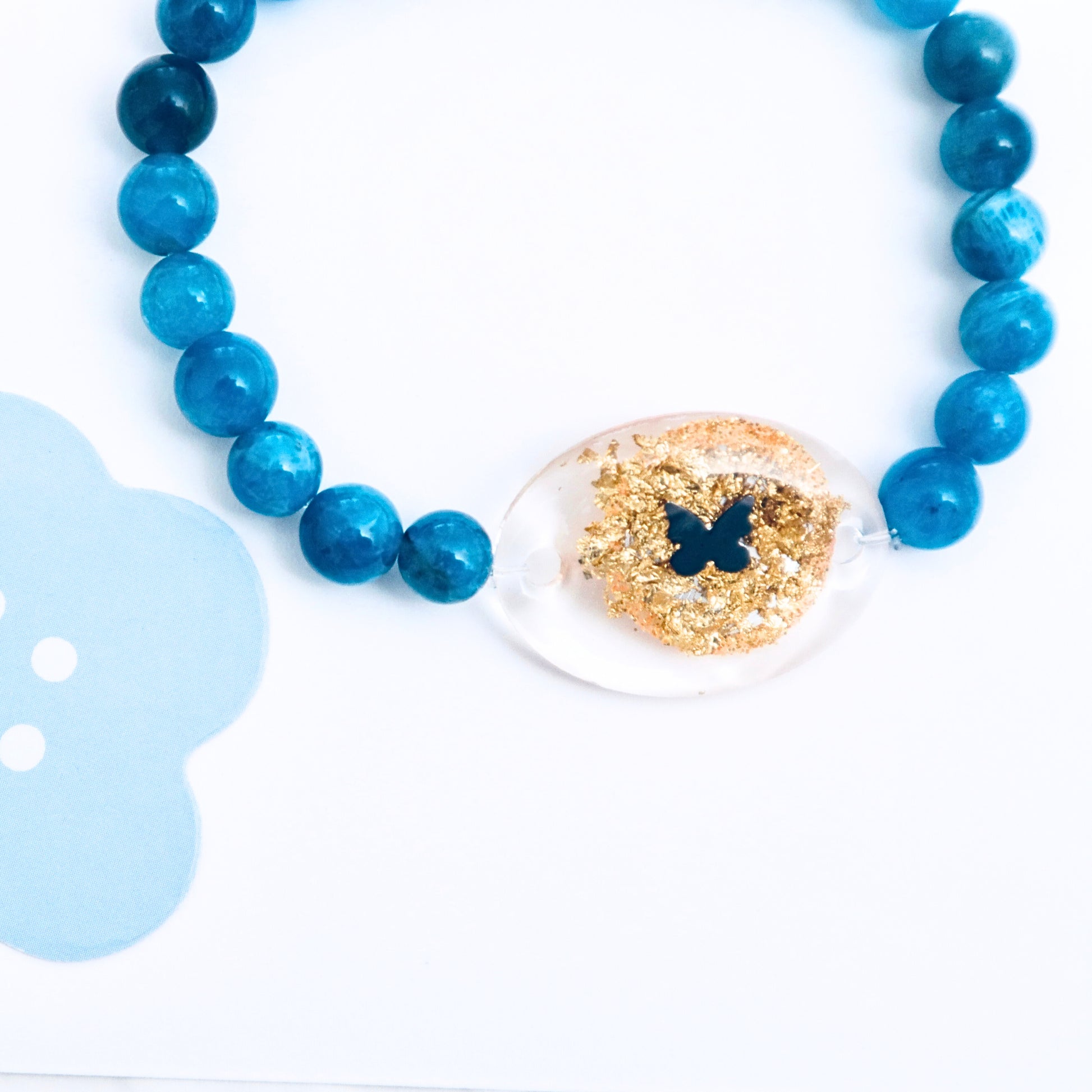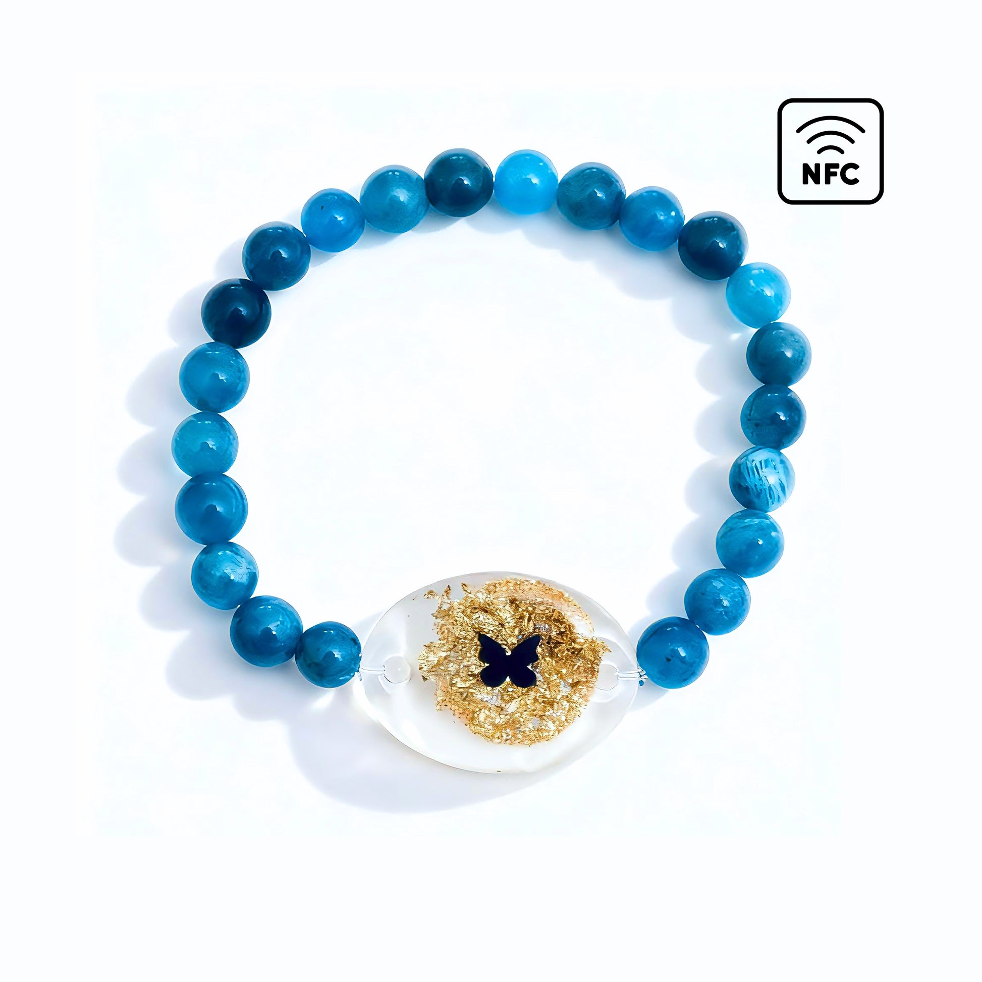 Material:Natural Blue Apatite beads (6mm) + Resin NFC charm (25mm × 19mm)