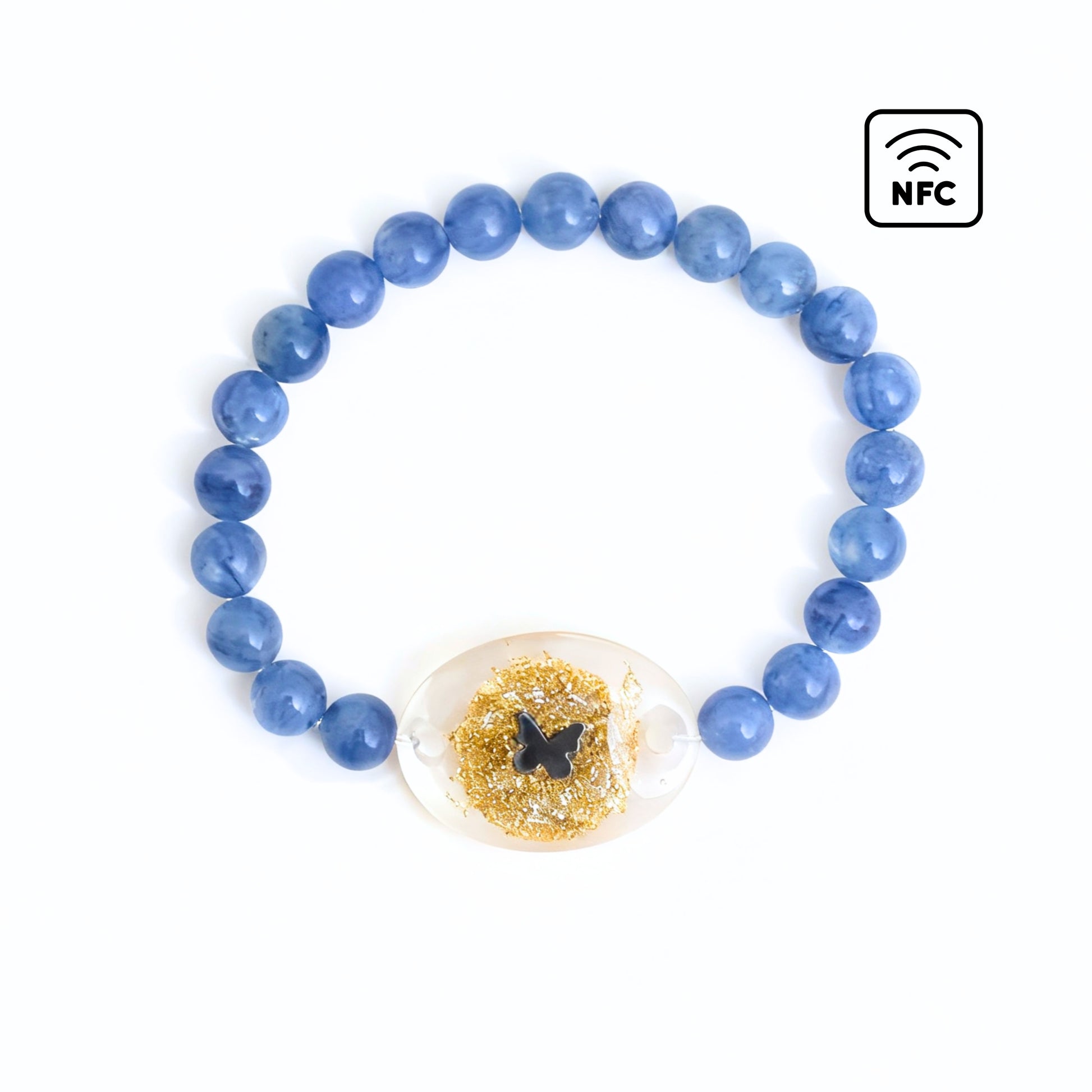 Material:Natural Blue Kyanite beads (6mm) + Resin NFC charm (25mm × 19mm)
