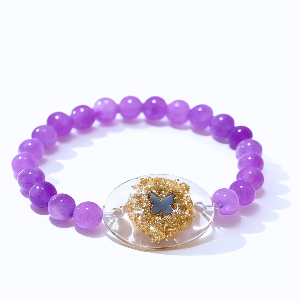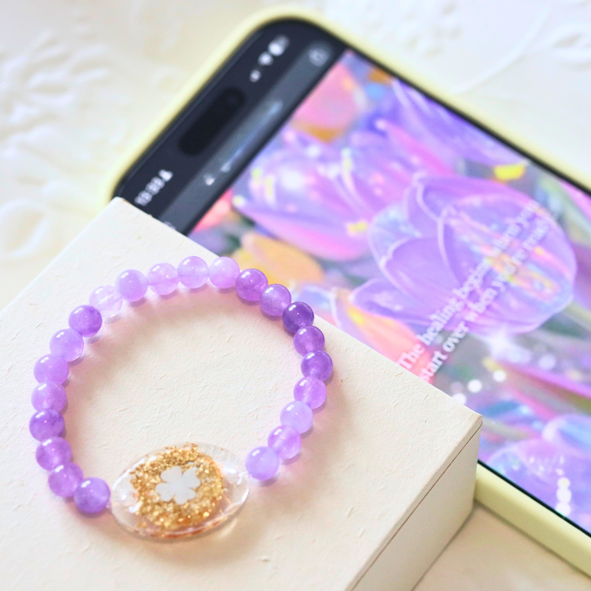 Material: High-quality Purple Chalcedony beads (6mm) + Resin NFC charm (25mm × 19mm)