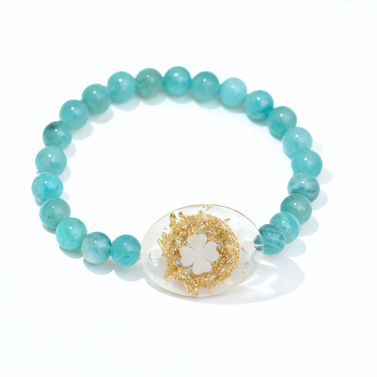 Material:Natural Amazonite beads (6mm) + Resin NFC charm (25mm × 19mm)