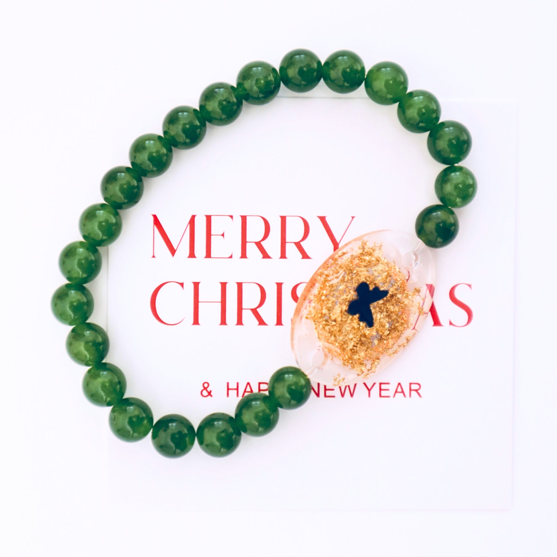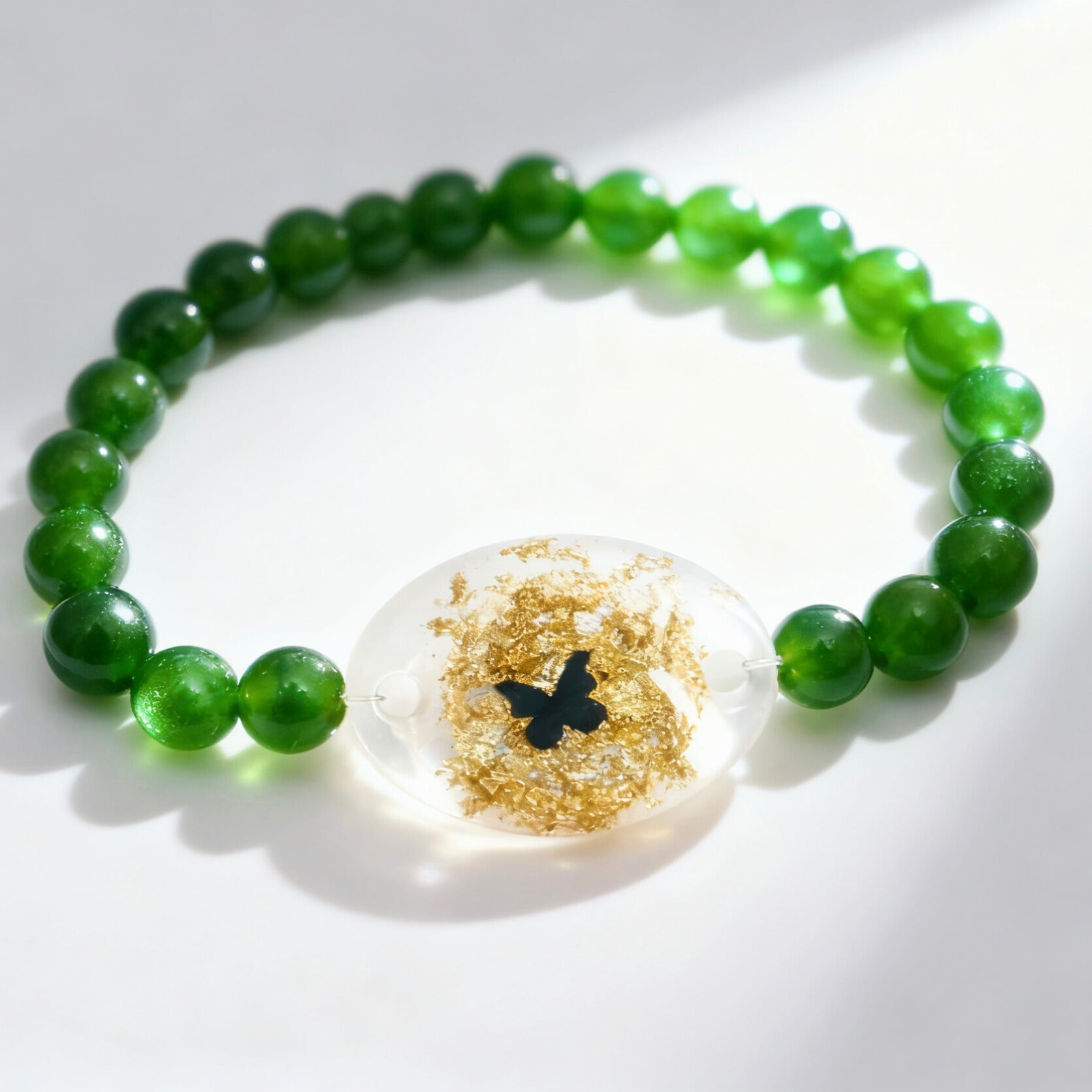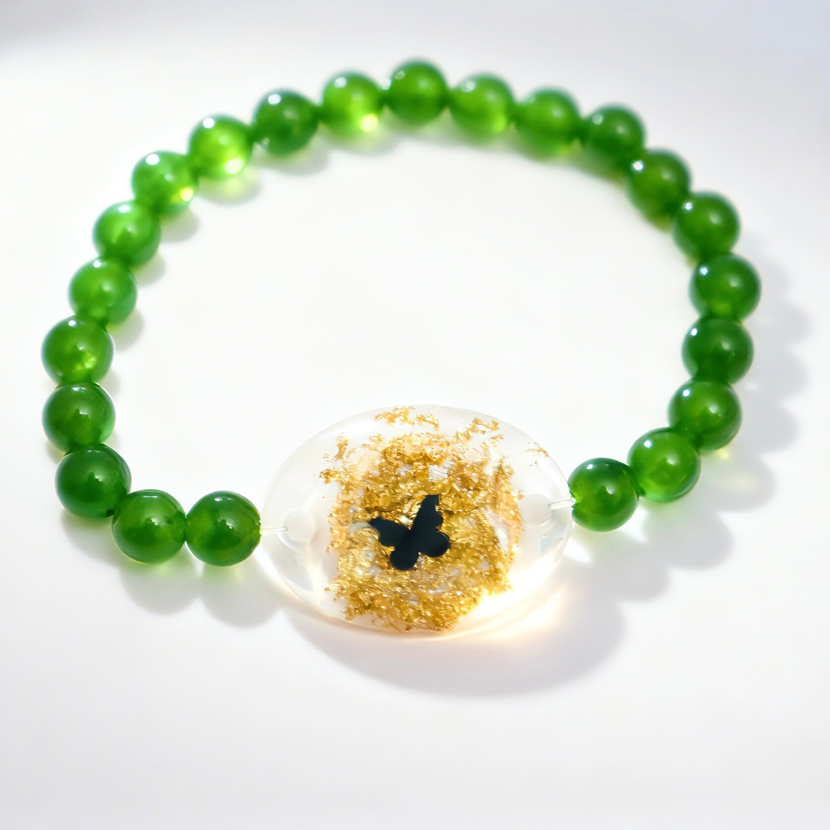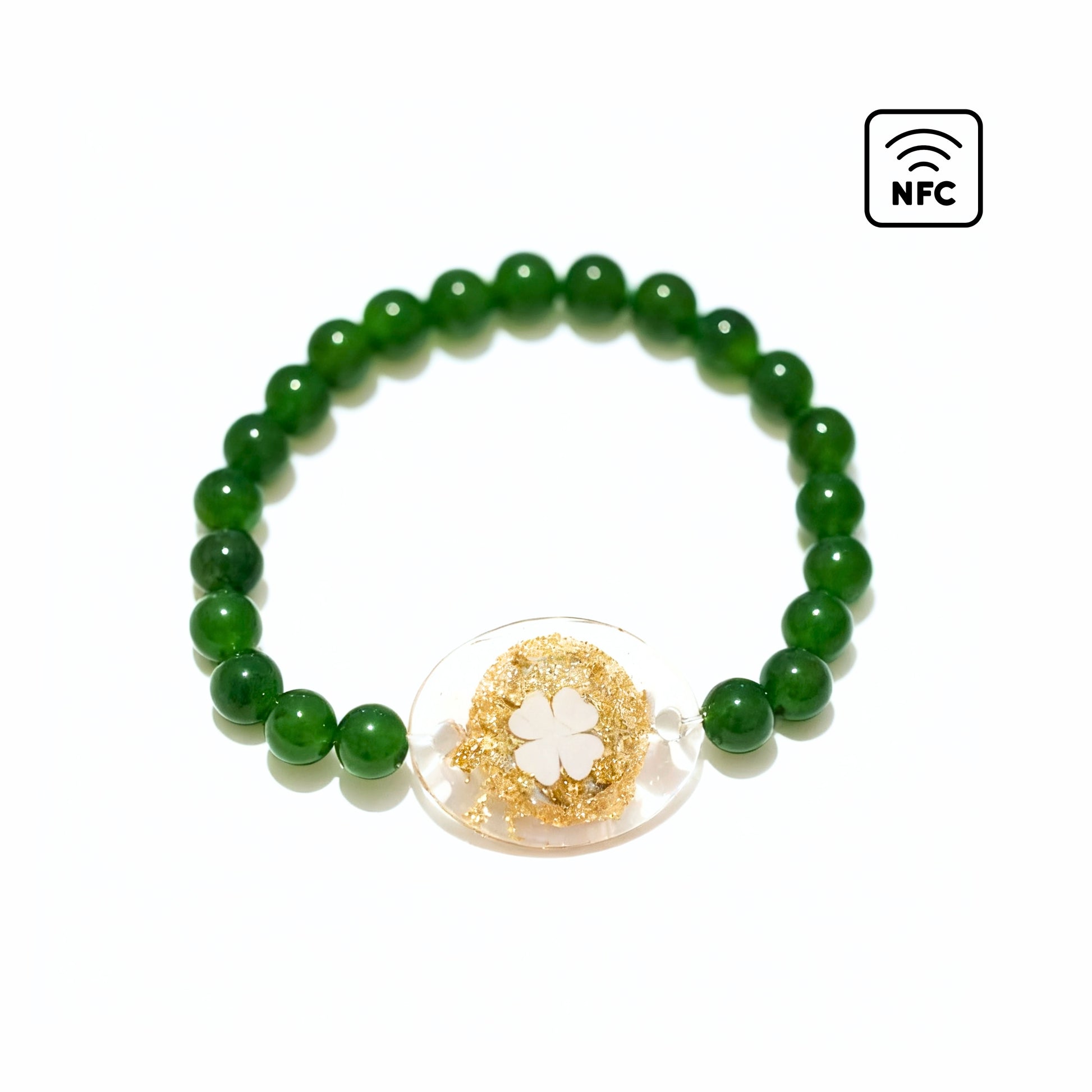 Material:Natural Deep Green Jade beads (6mm) + Resin NFC charm (25mm × 19mm)