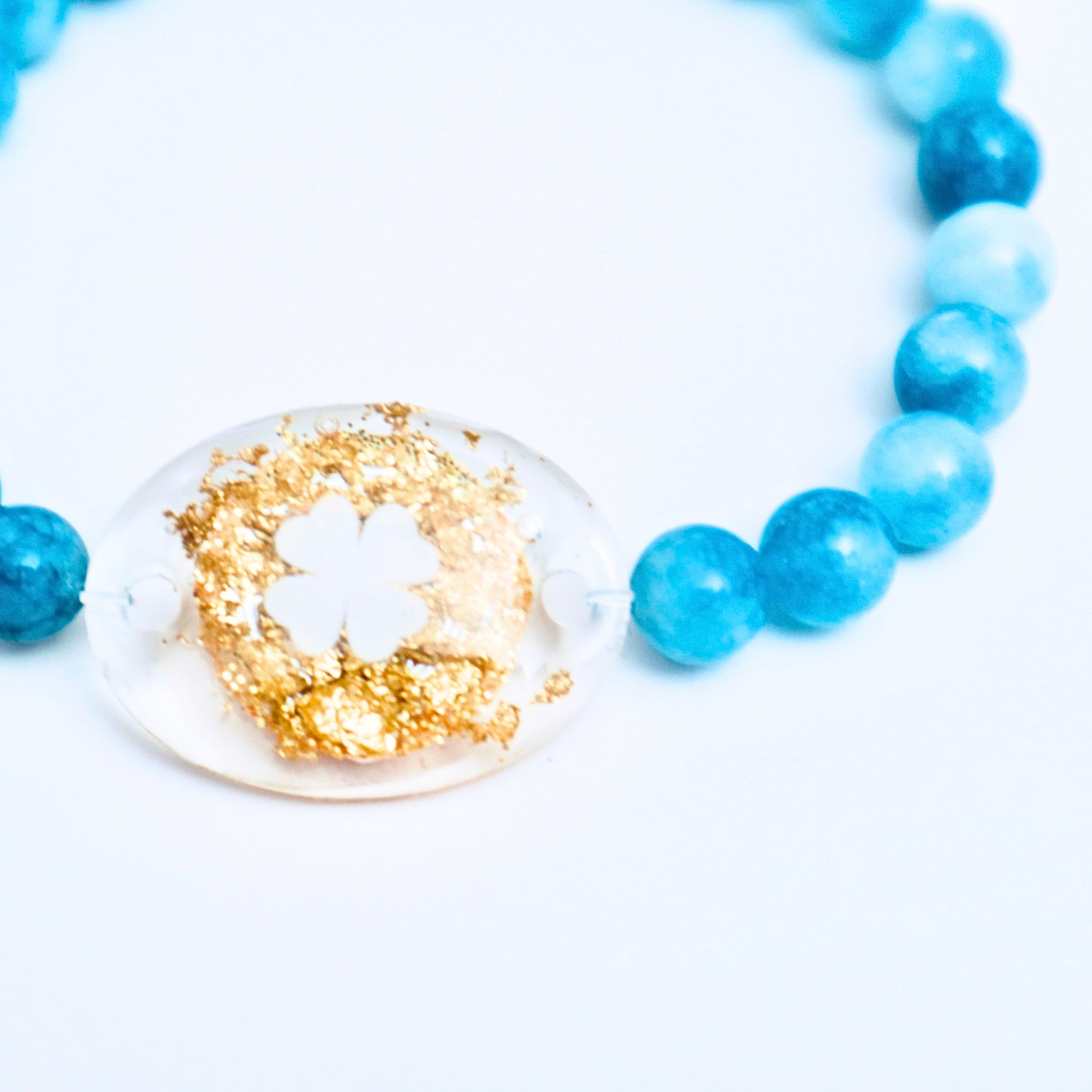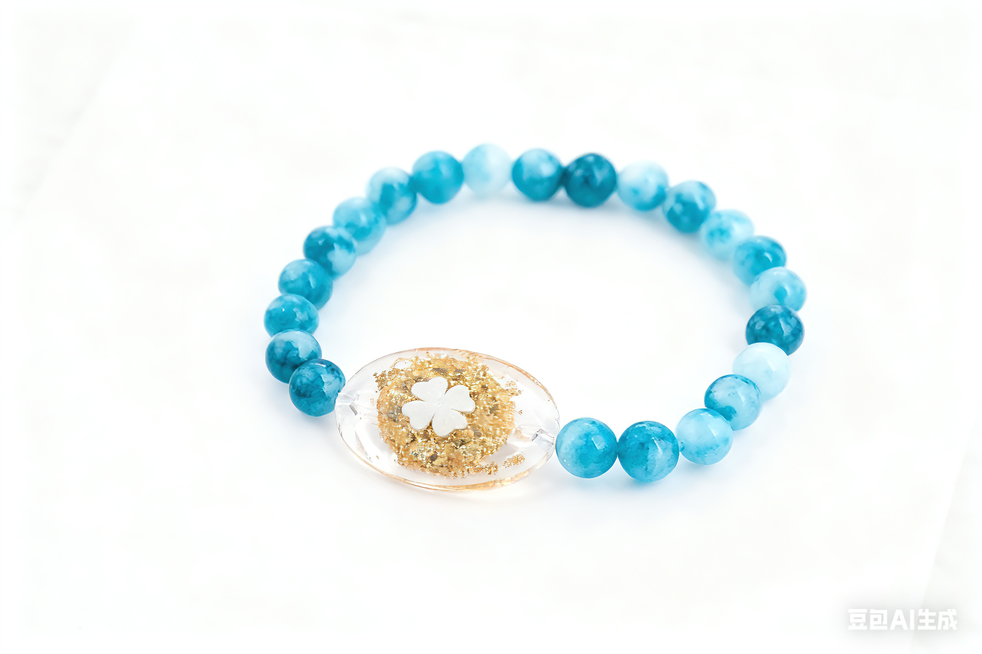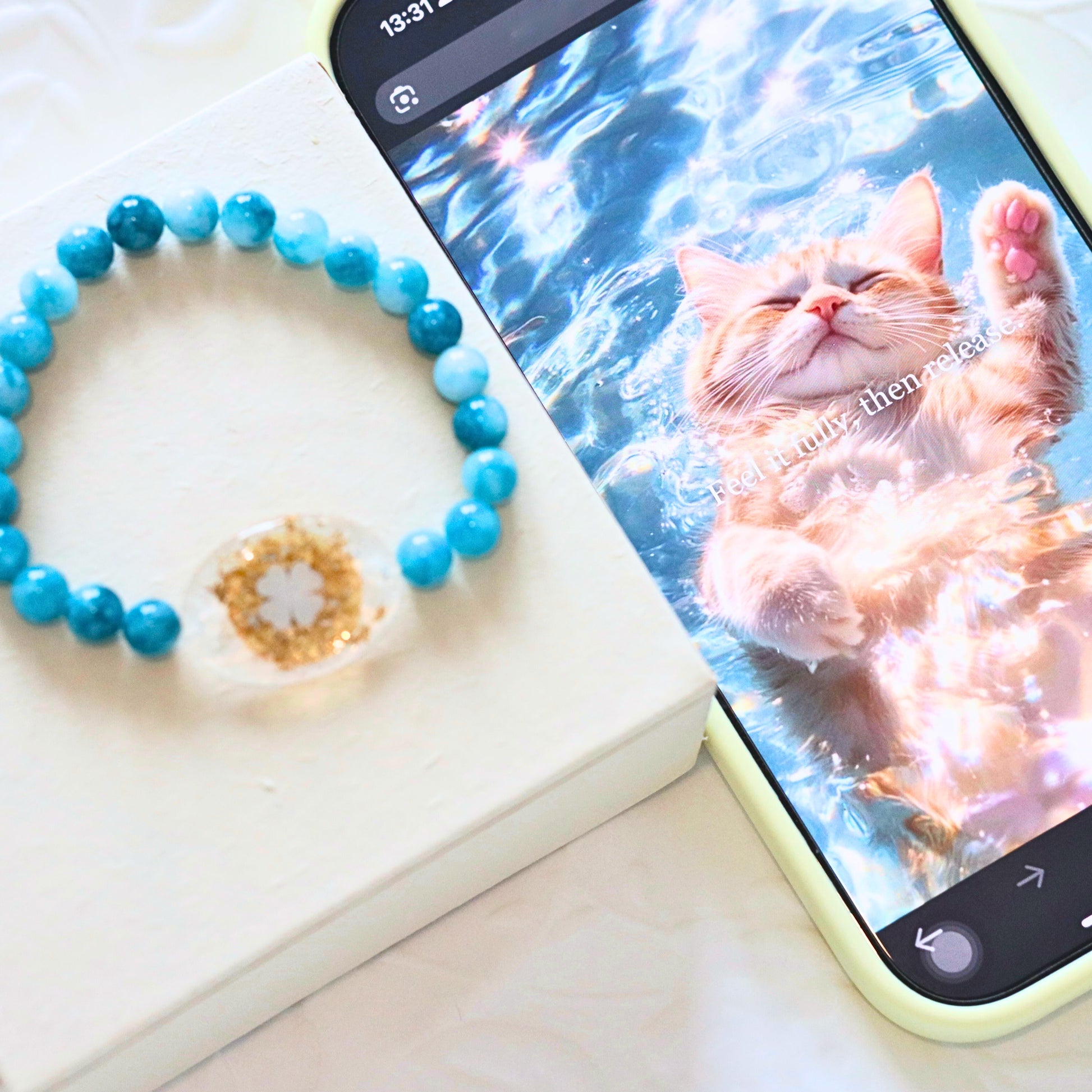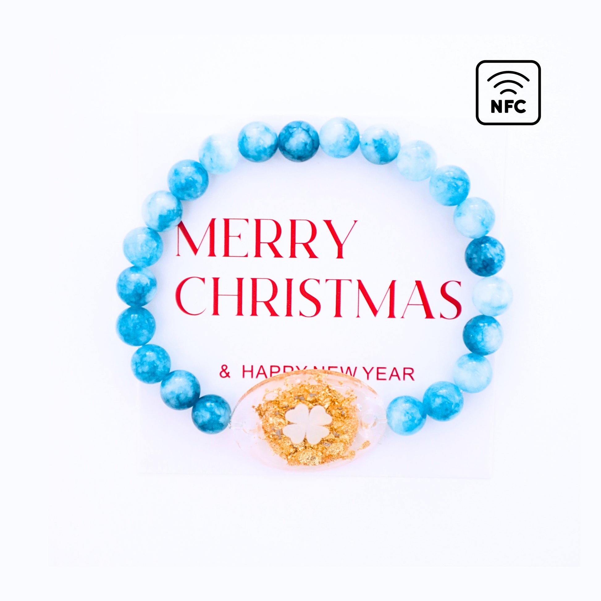 Material:Natural Blue Chalcedony beads (6mm) + Resin NFC charm (25mm × 19mm)